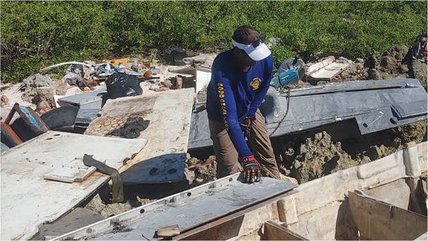 The remote location of Mona Island, more than 50 miles from the main island of Puerto Rico, necessitated close collaboration among the natural resource Trustees, Puerto Rico Department of Natural and Environmental Resources, National Oceanic and Atmospheric Administration (NOAA), and the U.S. Fish and Wildlife Service of the U.S. Department of the Interior (DOI). DNER was instrumental in getting proposals from local contractors that described a range of removal options and ultimately the Trustees selected a proposal that protected natural resources, had flexibility with changing site conditions, and was as cost effective as practicable given the remote location. All agencies coordinated their efforts to ensure that pre-removal in-water and shoreside surveys were conducted to mark and protect threatened and endangered corals and identify locations on the land where vessel debris could be temporarily placed during the extraction process. On October 2, 2023, the Natural Resource Trust submitted a claim to the National Pollution Funds Center (NPFC) to fund an Emergency Restoration action to remove the vessel to avoid further impacts to natural resources.